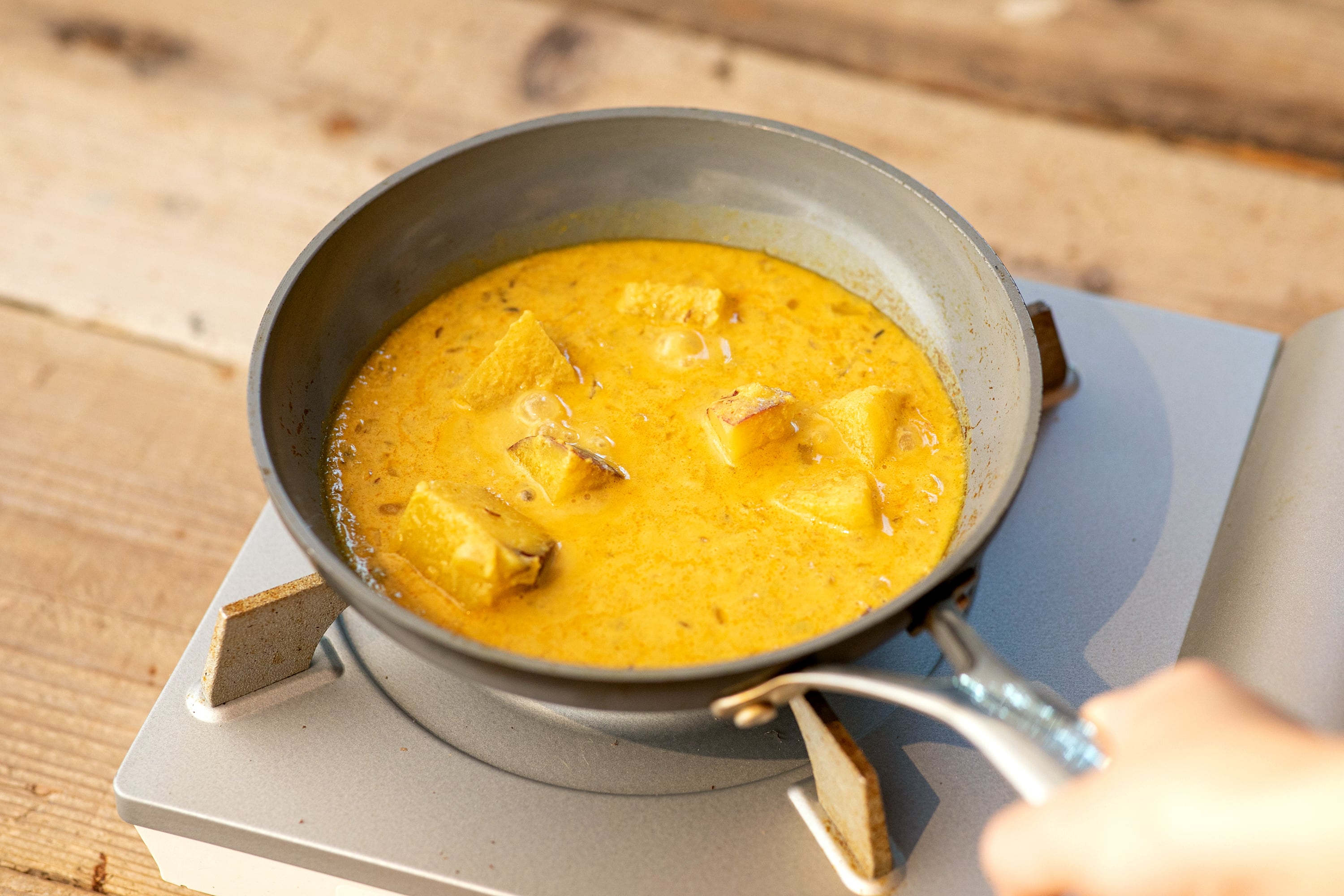 鍋やフライパンで温めたら、熱々のごはんに盛り付けるだけ。